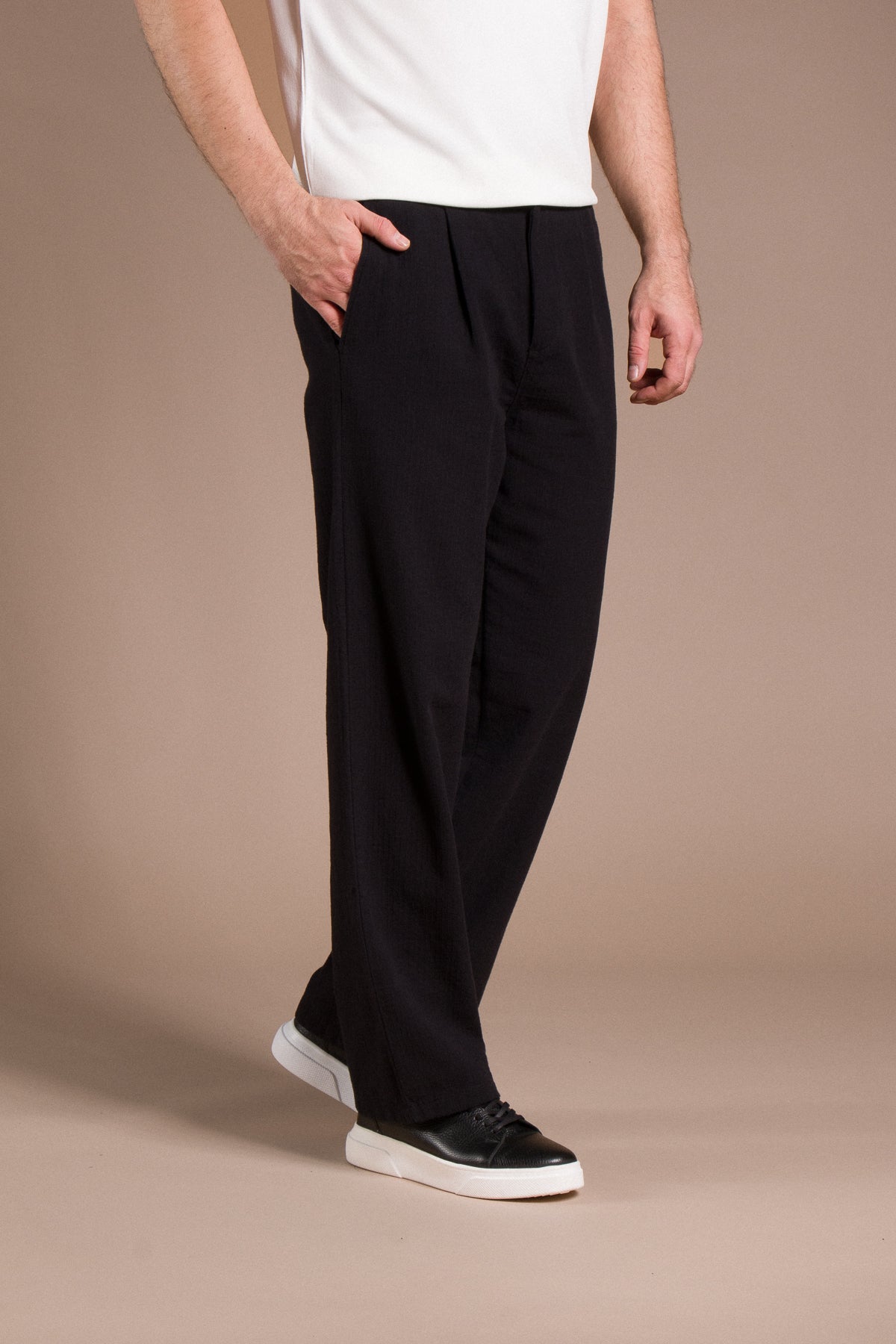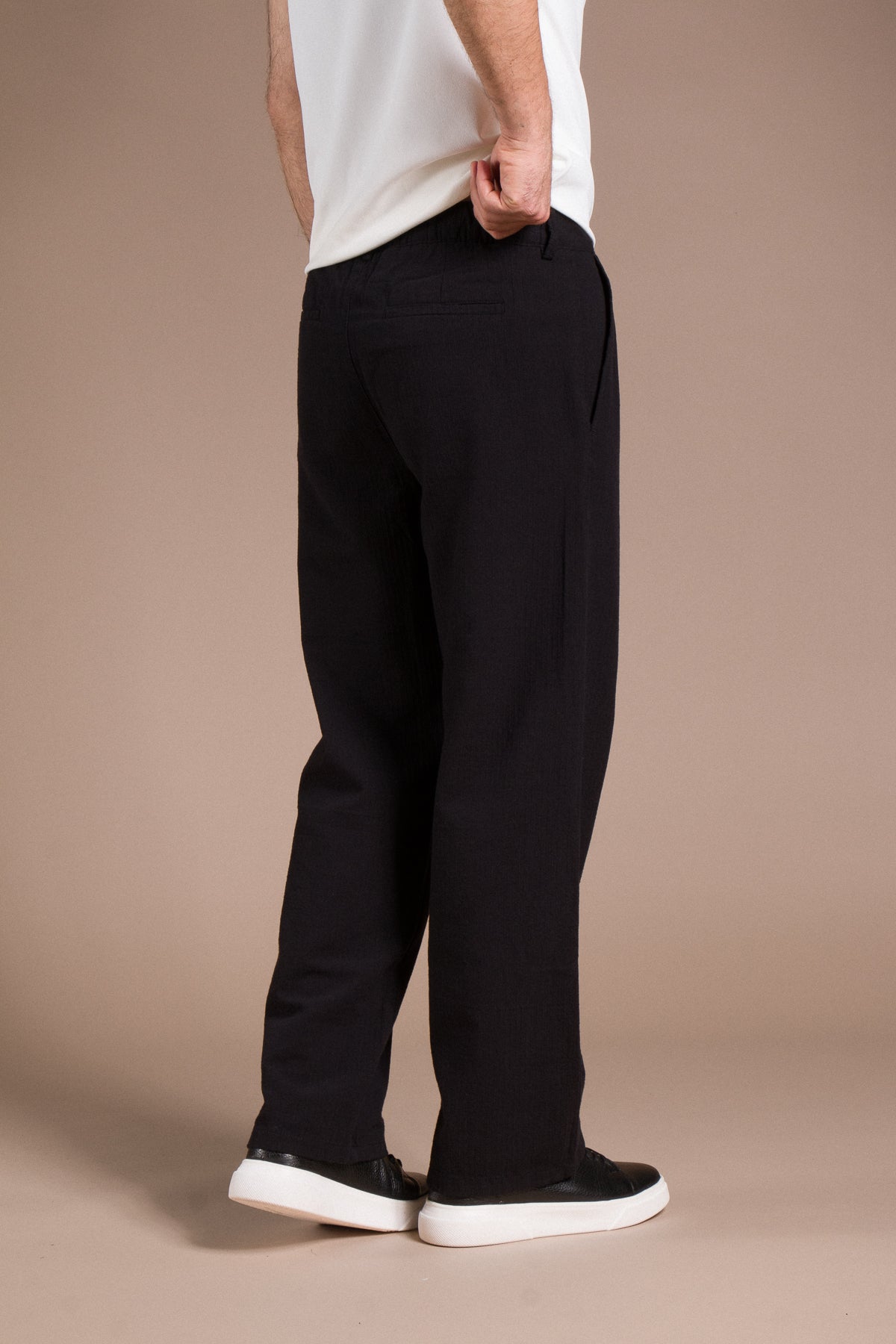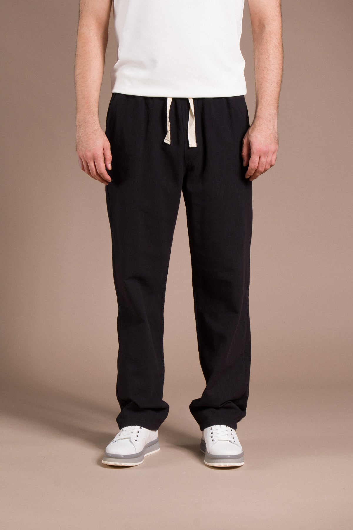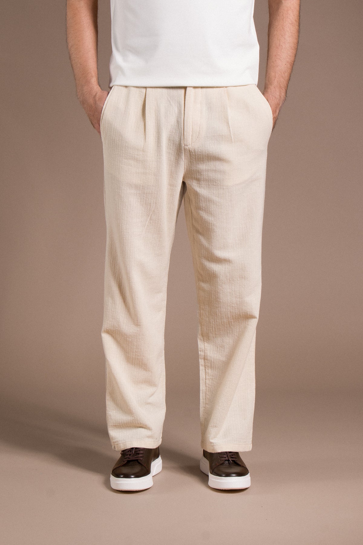 Hafif dokusu ve zamansız tarzıyla her kombine uyum sağlayan pantolonları keşfedin.