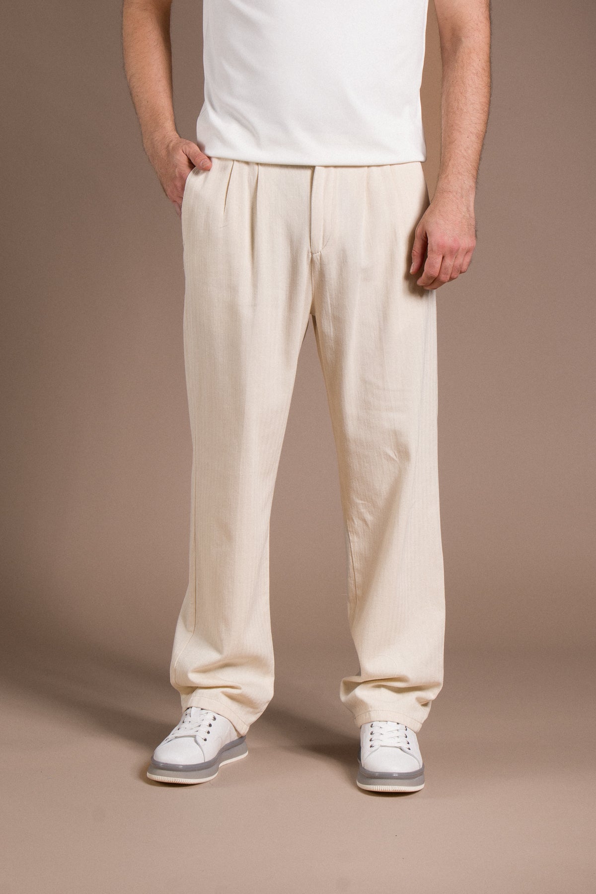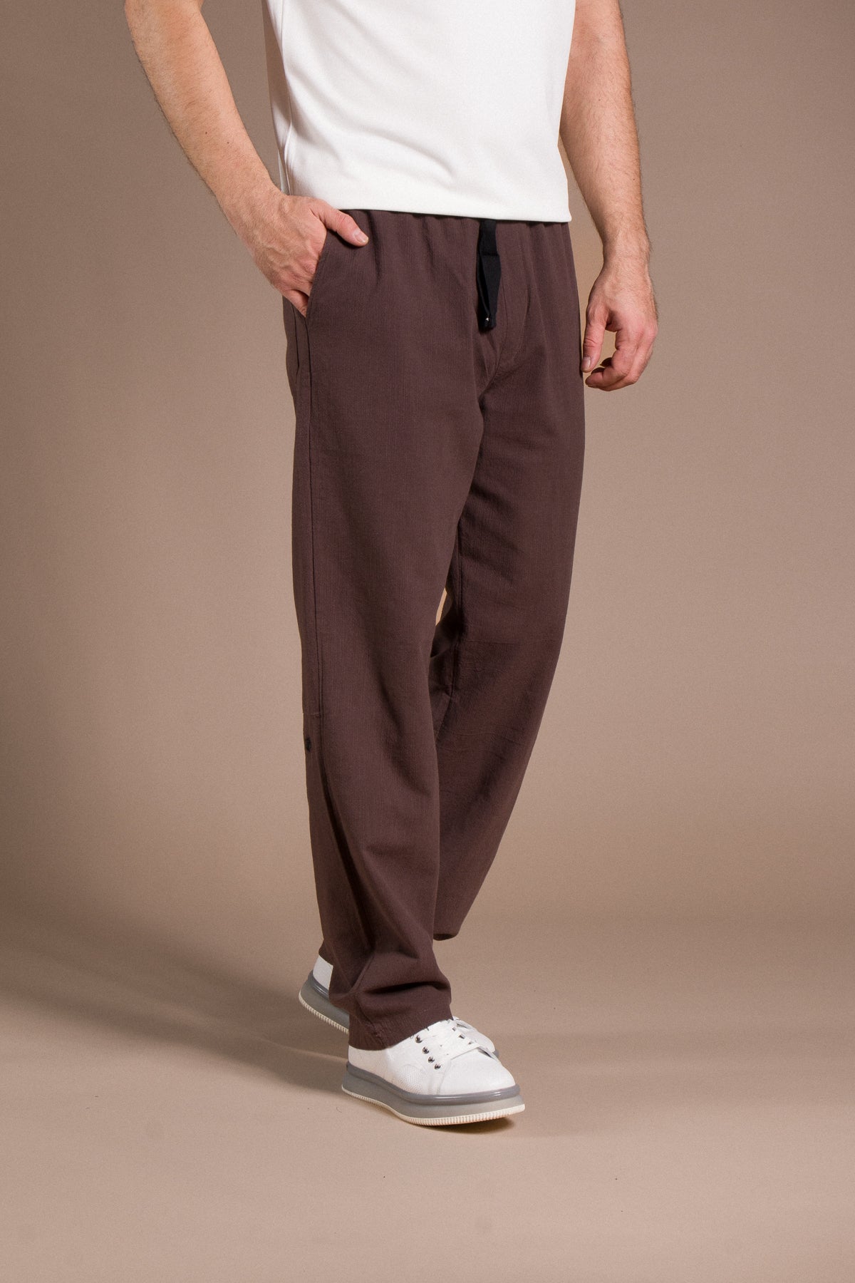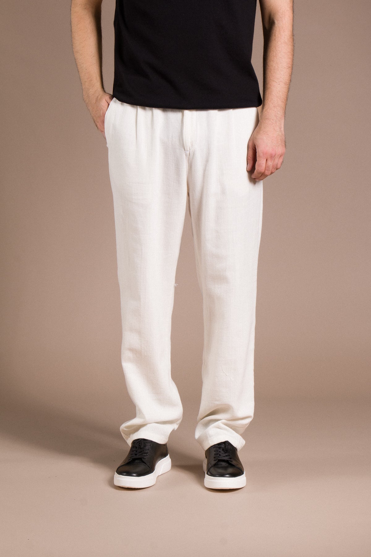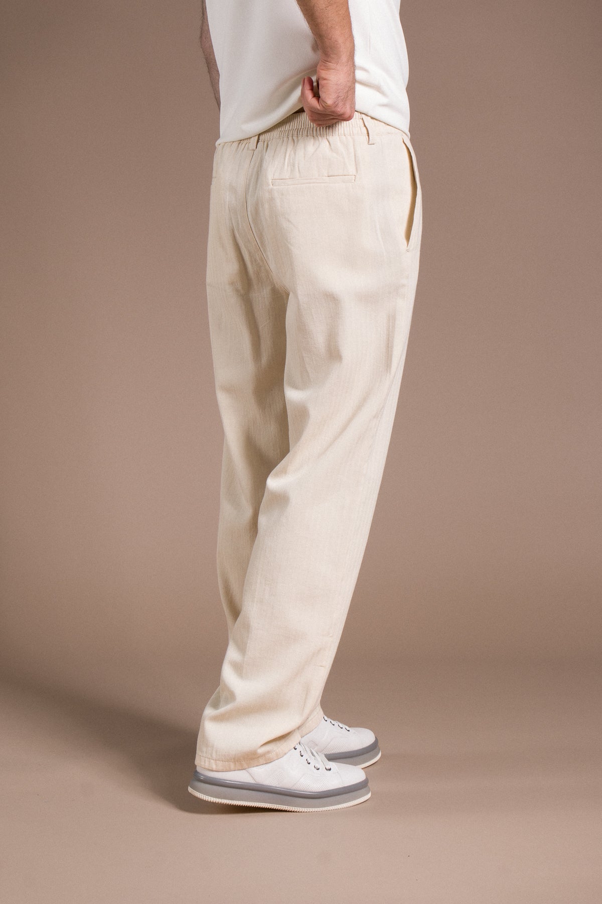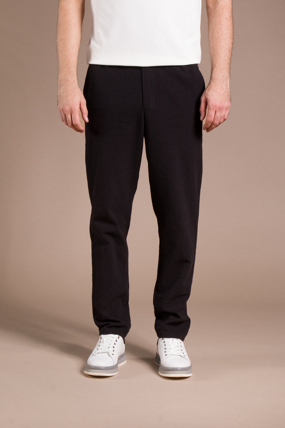Hafif dokusu ve zamansız tarzıyla her kombine uyum sağlayan pantolonları keşfedin.