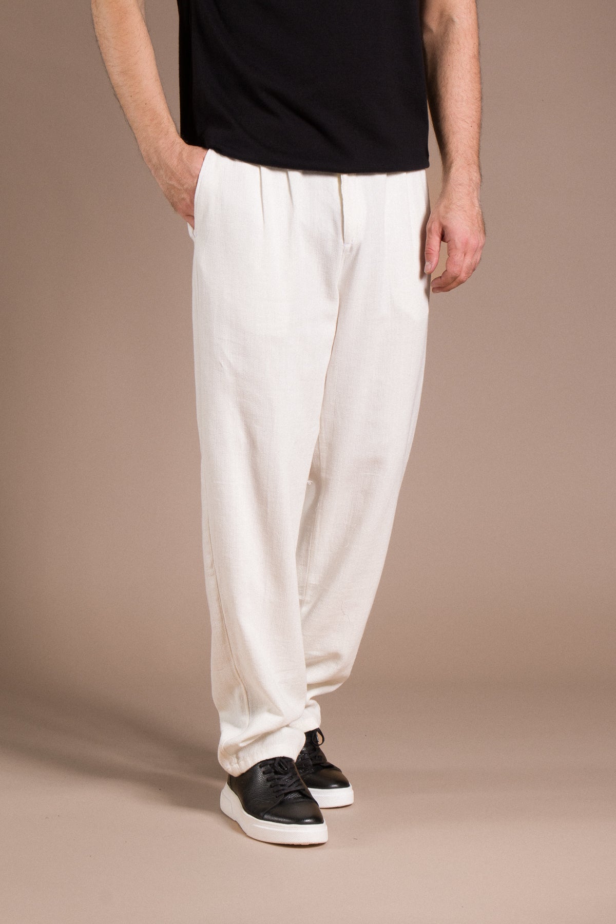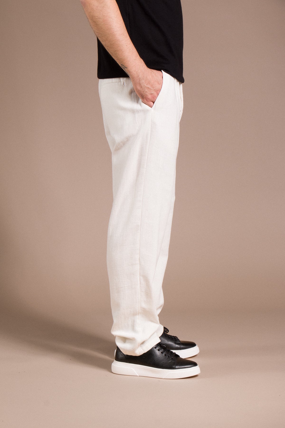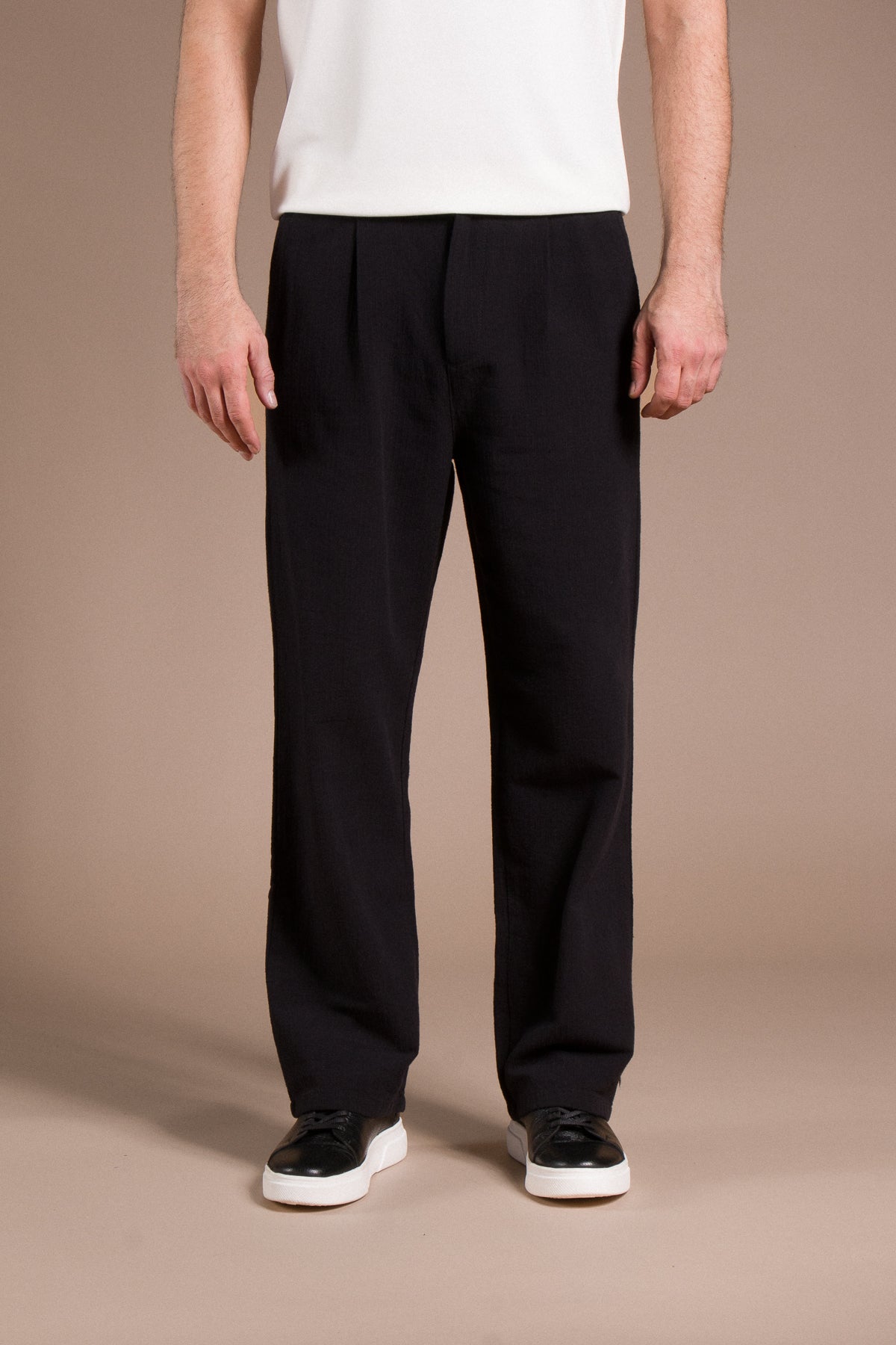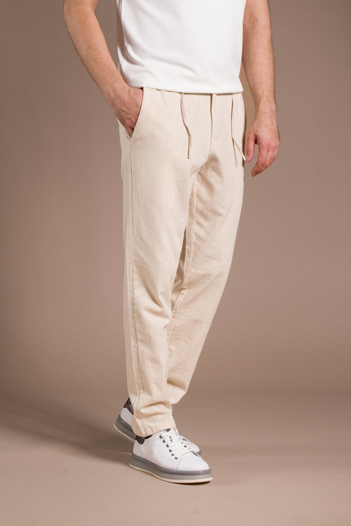 Hafif dokusu ve zamansız tarzıyla her kombine uyum sağlayan pantolonları keşfedin.