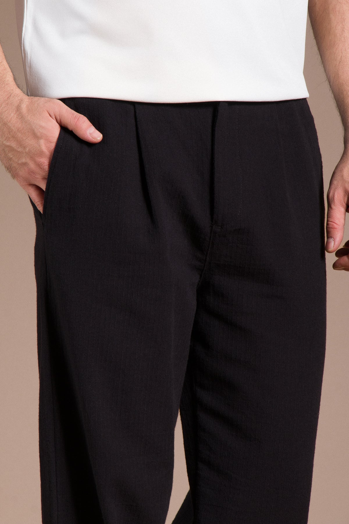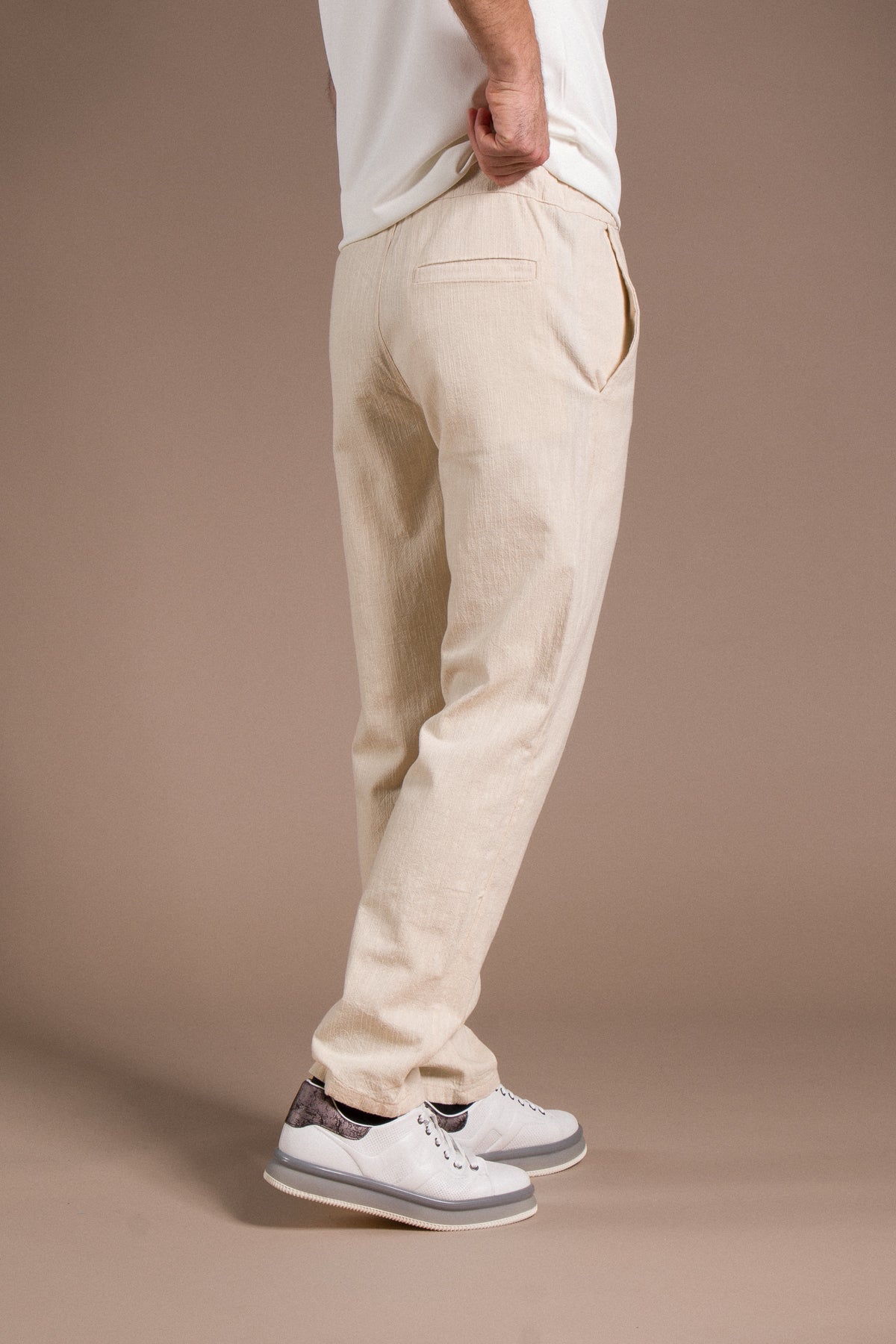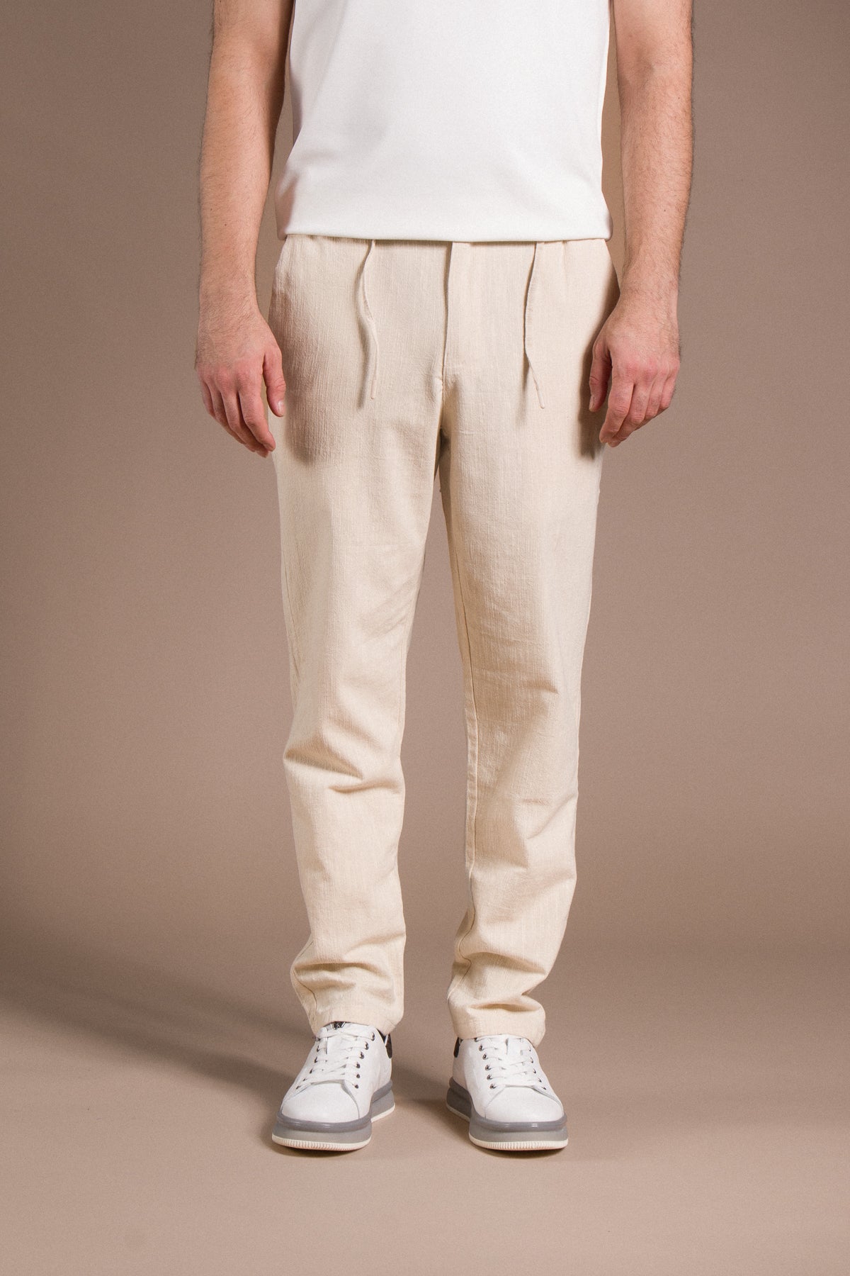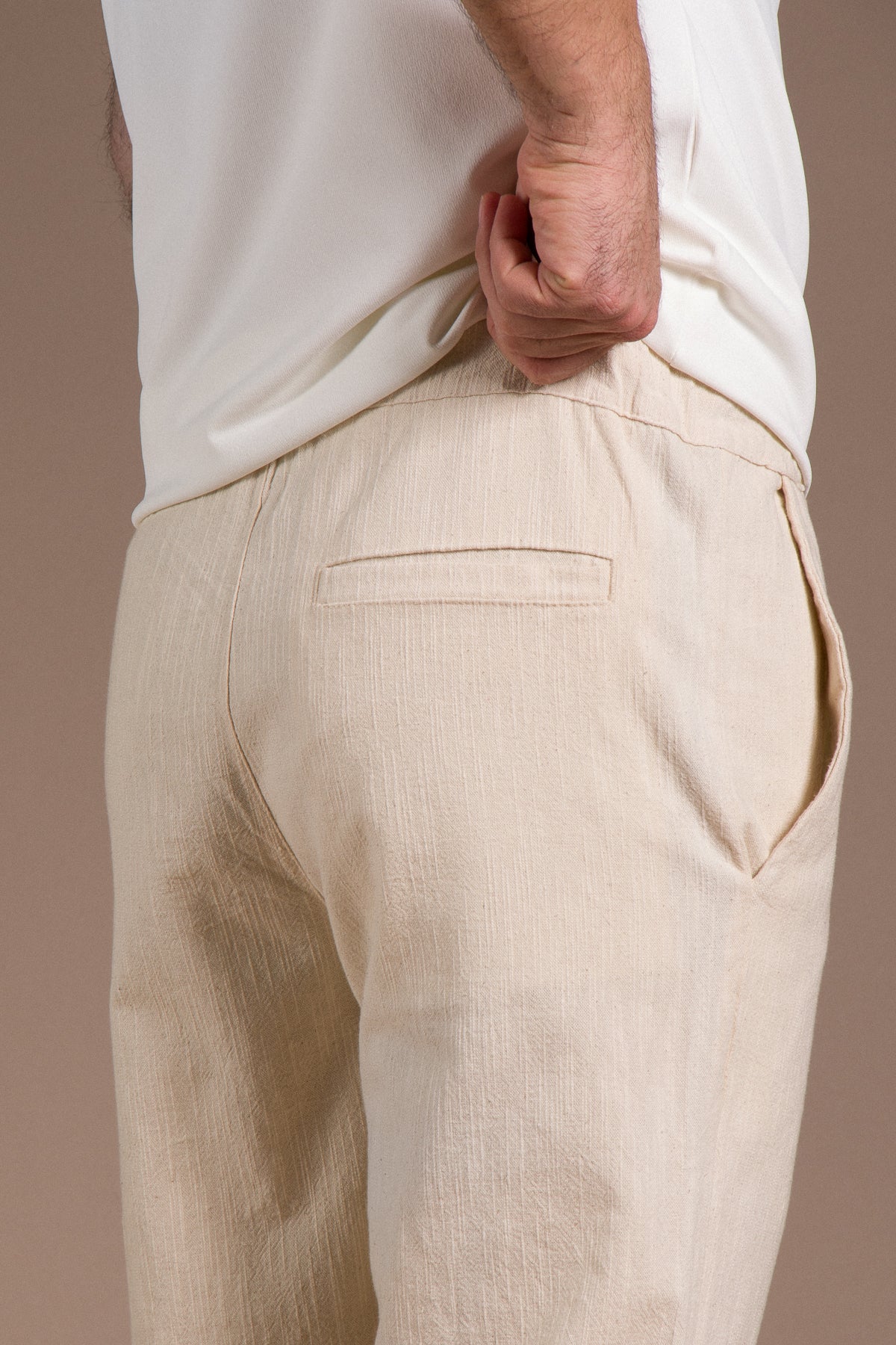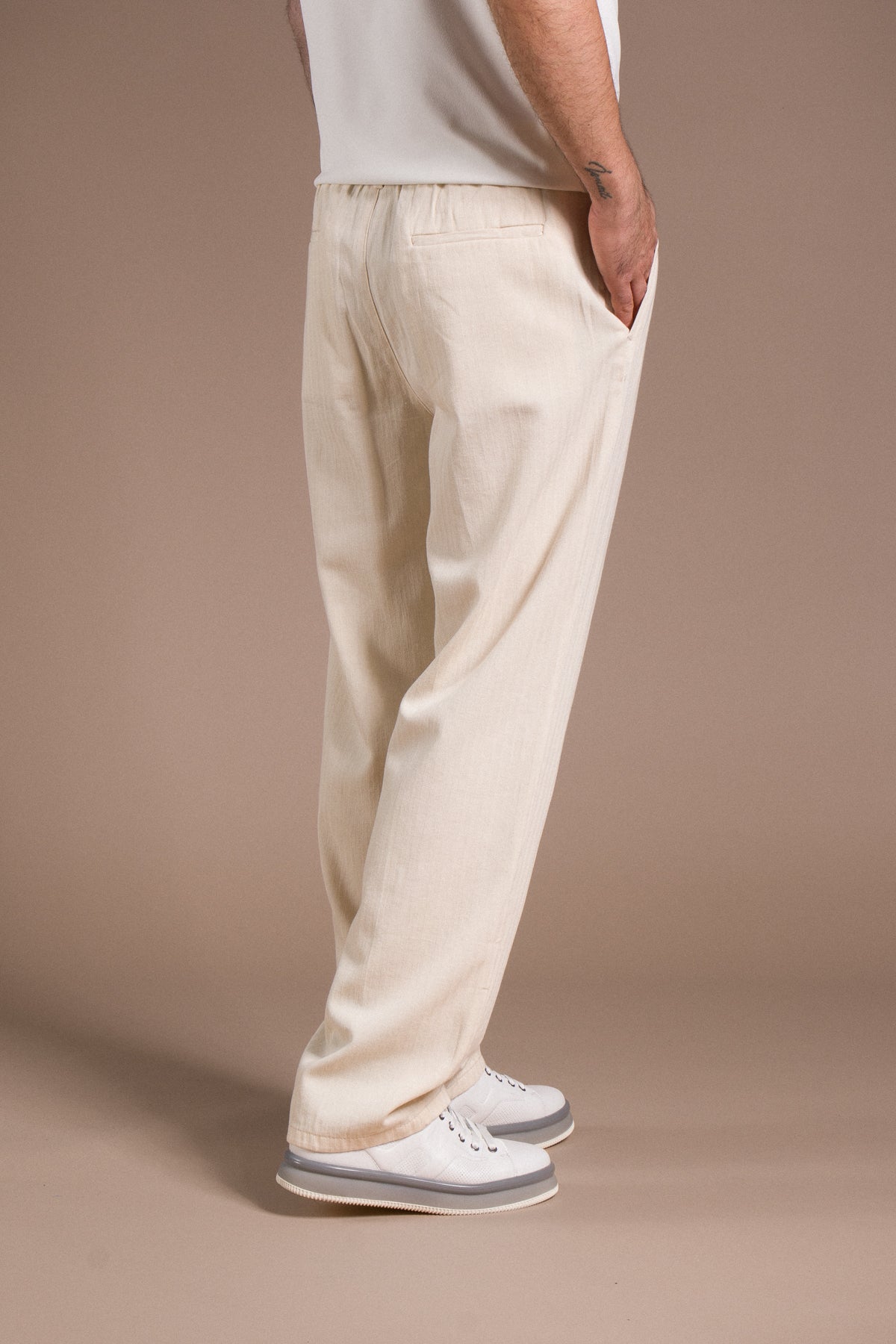 Hafif dokusu ve zamansız tarzıyla her kombine uyum sağlayan pantolonları keşfedin.