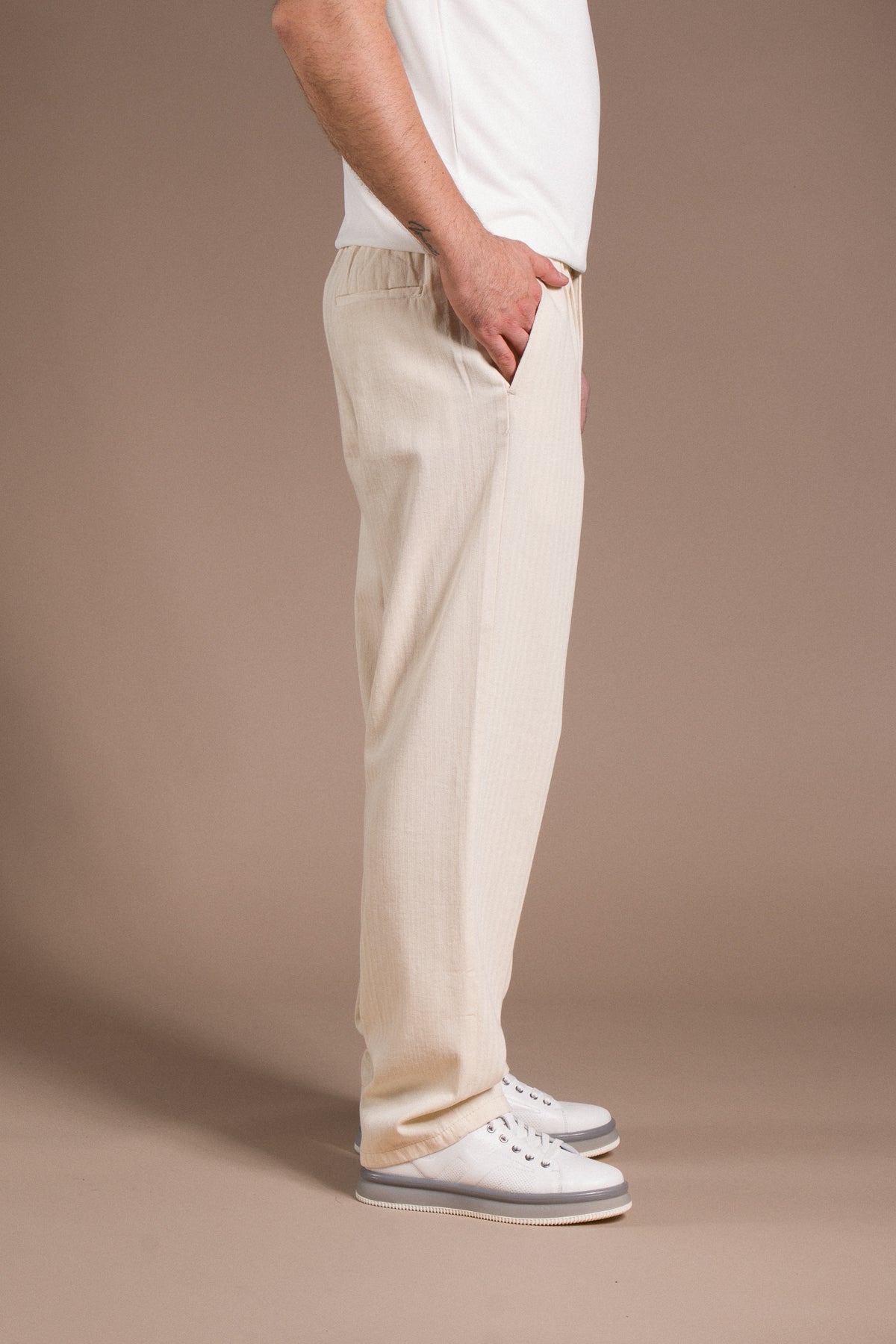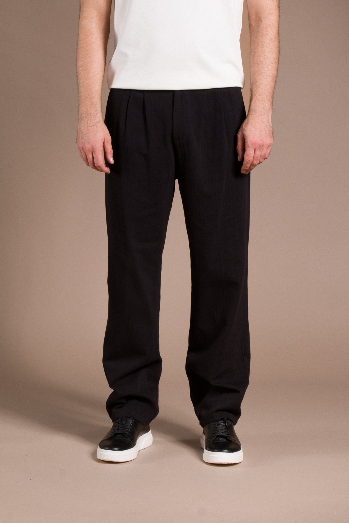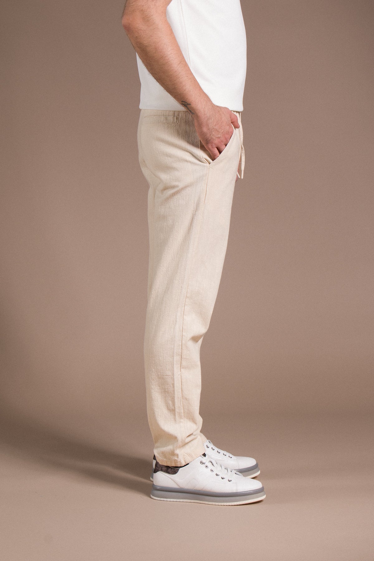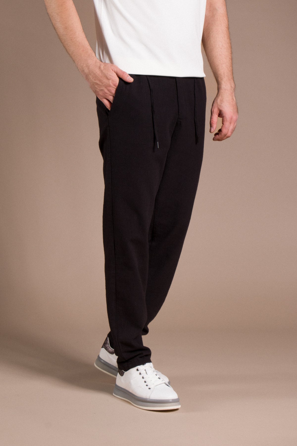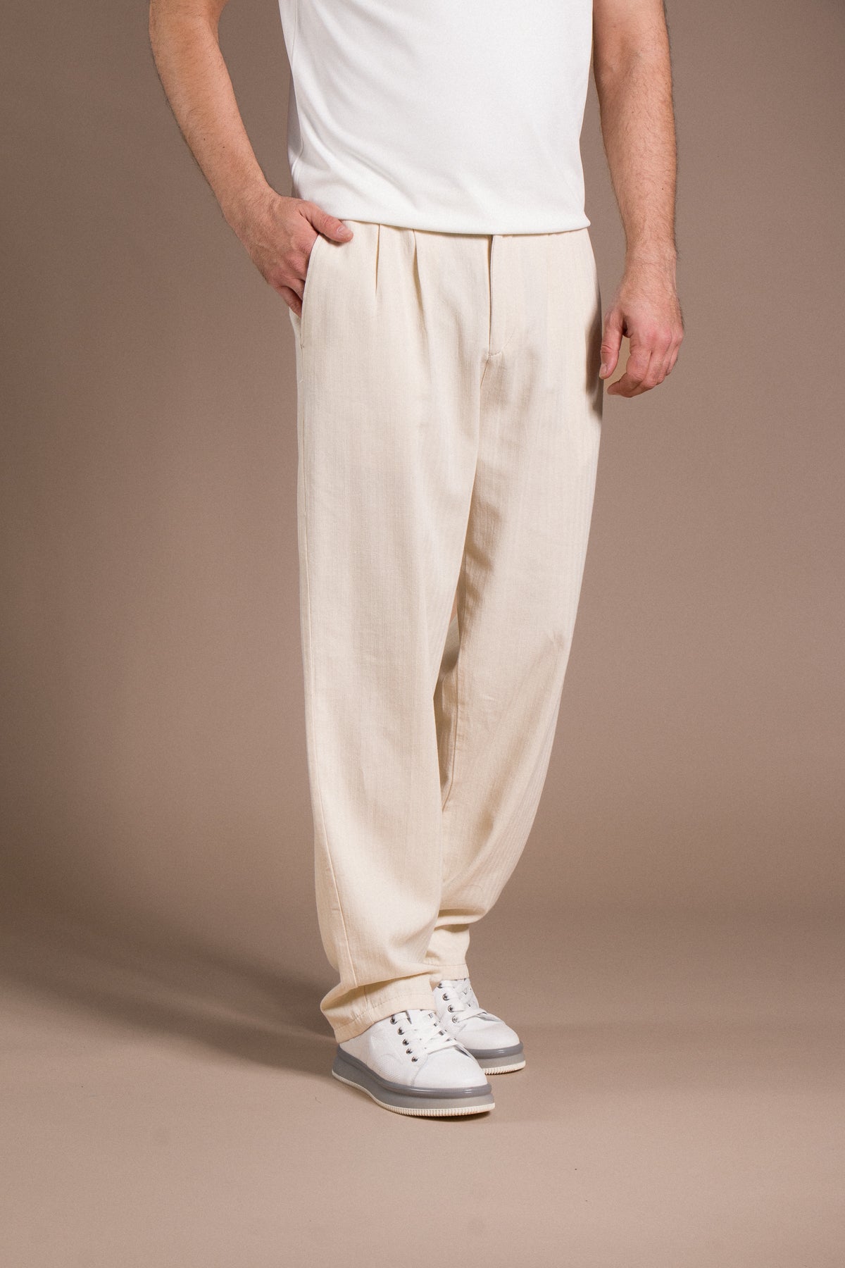 Hafif dokusu ve zamansız tarzıyla her kombine uyum sağlayan pantolonları keşfedin.
