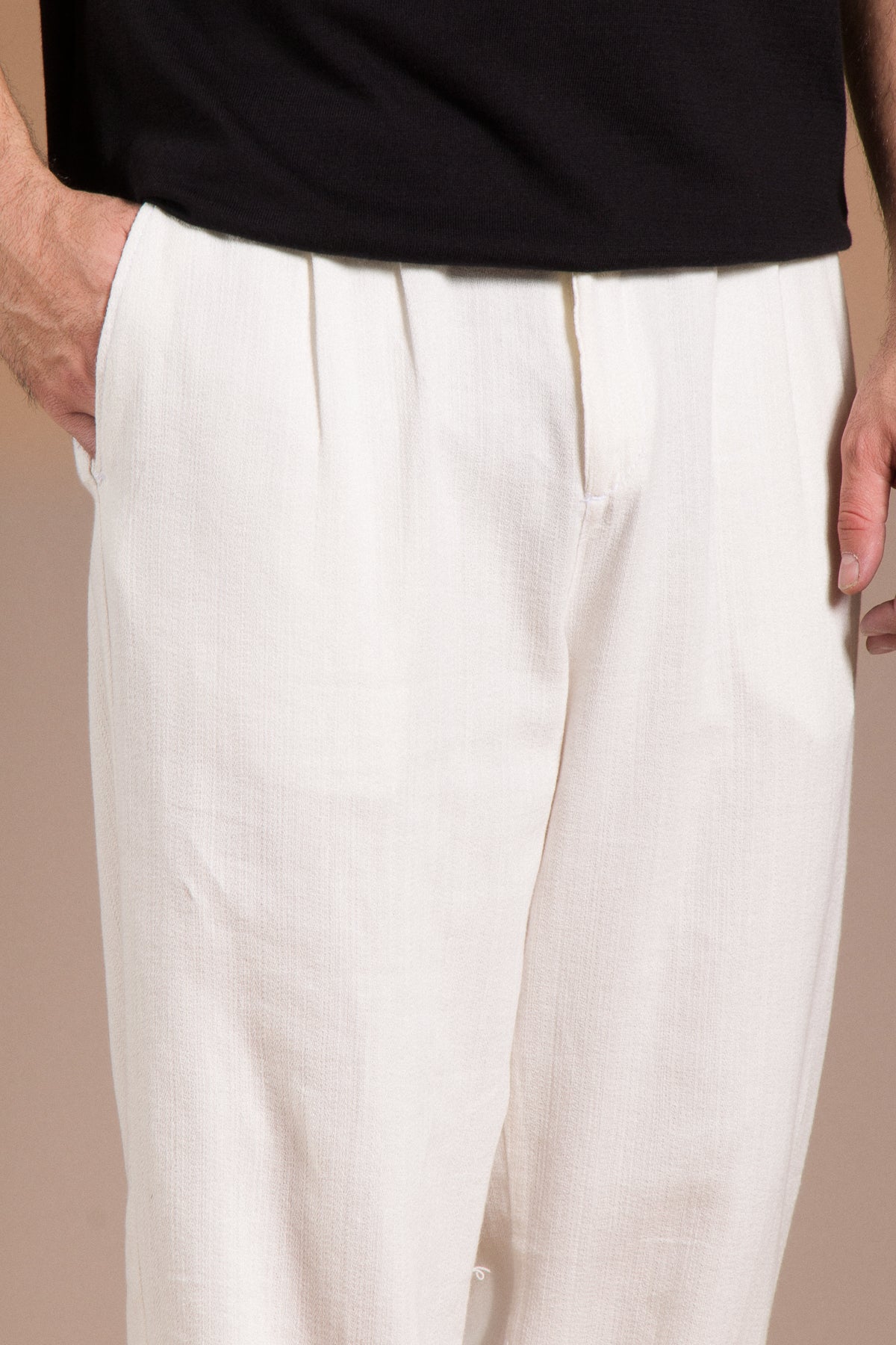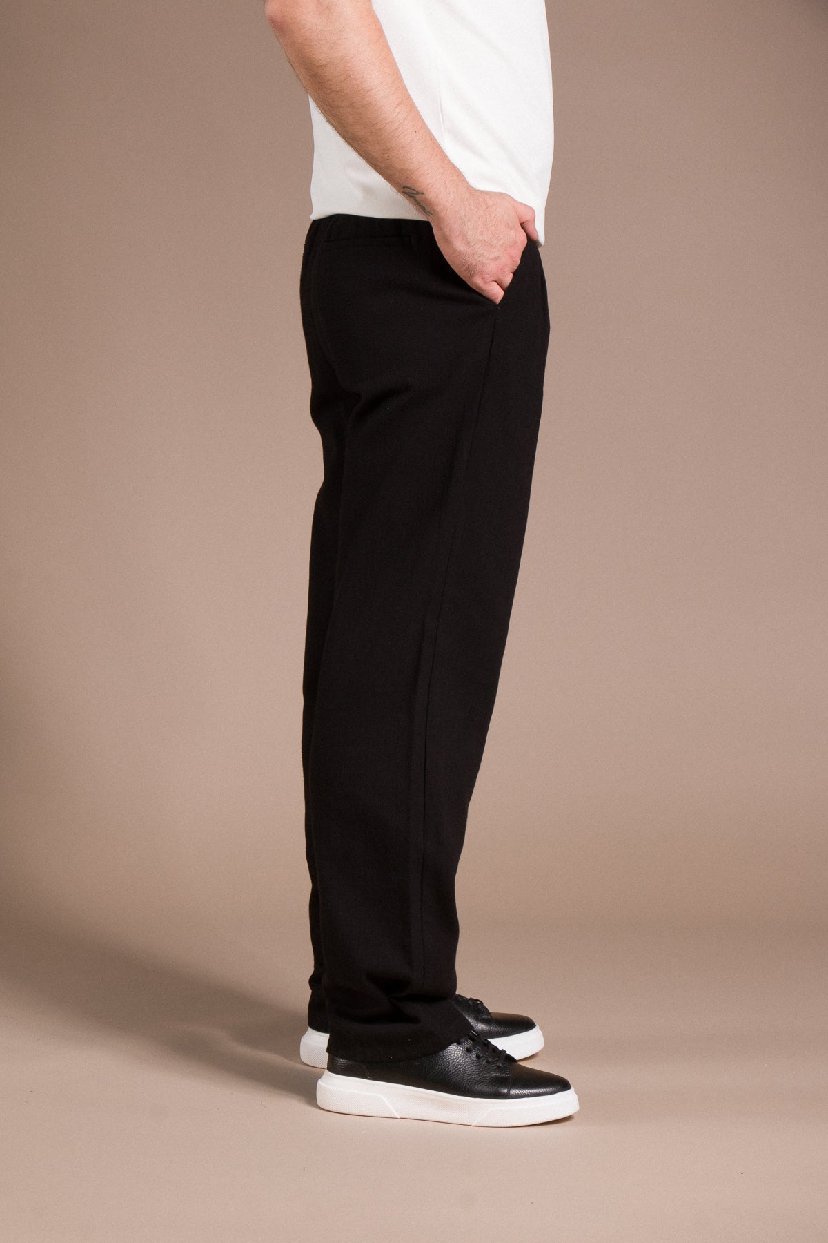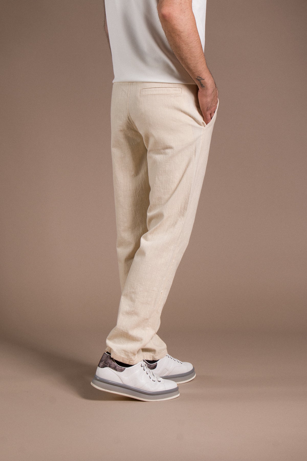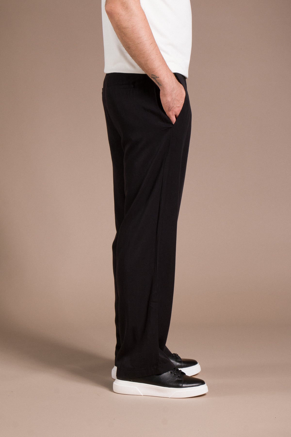Hafif dokusu ve zamansız tarzıyla her kombine uyum sağlayan pantolonları keşfedin.