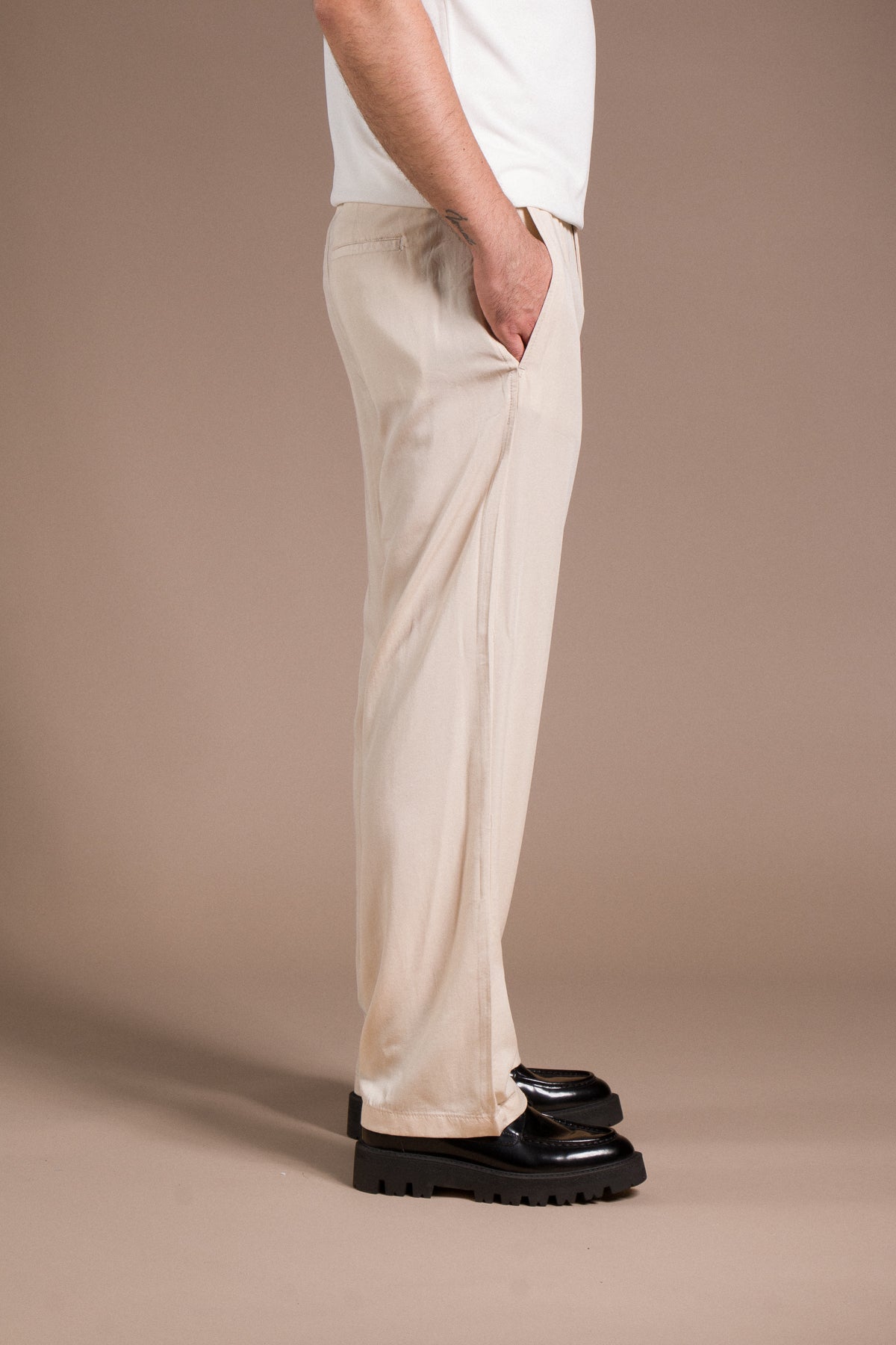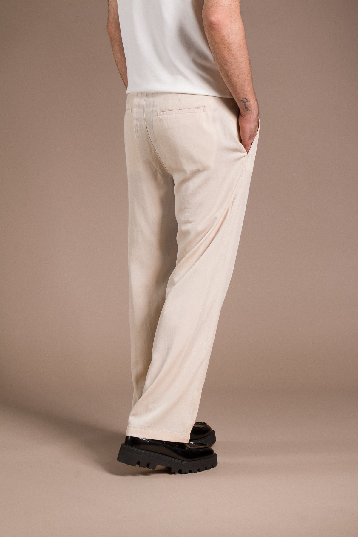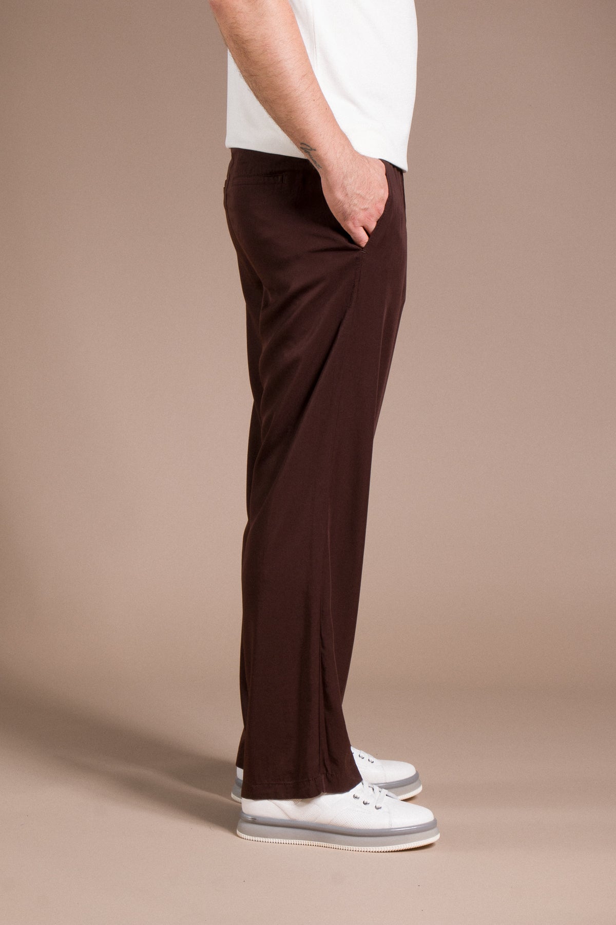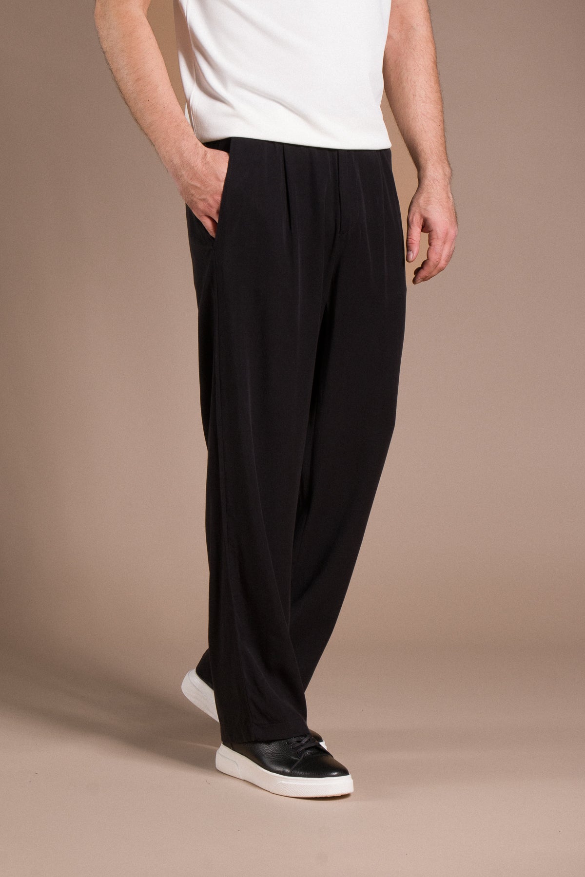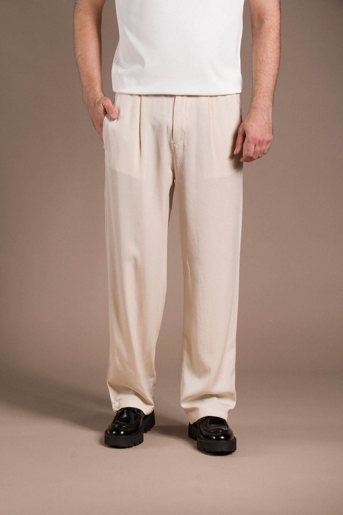 Hafif dokusu ve zamansız tarzıyla her kombine uyum sağlayan pantolonları keşfedin.